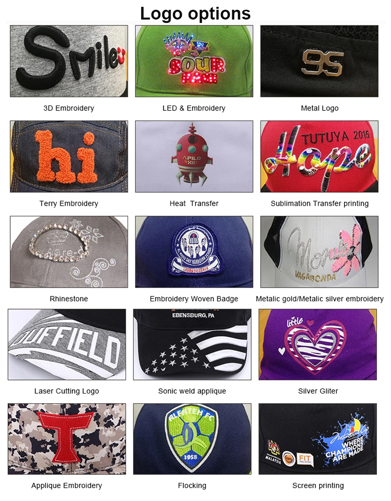 5 5.Logo Flat embroidery logo Plain, Printing, Applique embroidery, embroidery etc also available. Custom made according to customer's design